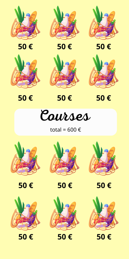 Cocher chaque case dès que vous avez un billet de 5 euros