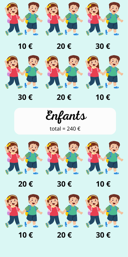 Mettez dans votre enveloppe la somme correspondant au chiffre sur votre enveloppe.
