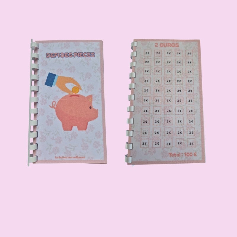 Carnet de 9 pages avec défis de 1 centime jusqu'a 2 euros.