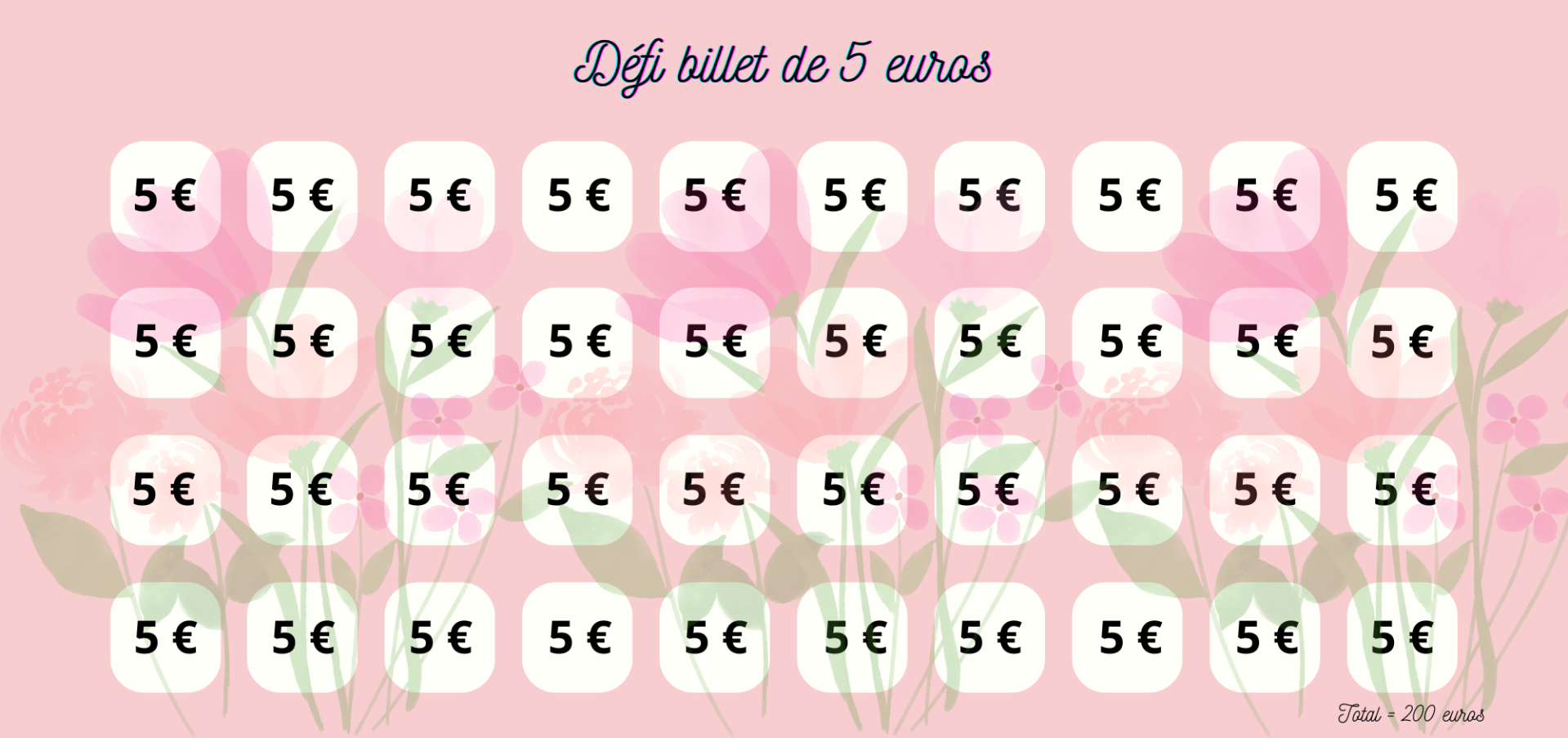 Cocher chaque case dès que vous avez un billet de 5 euros