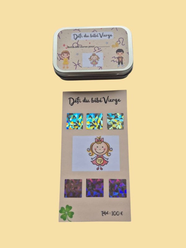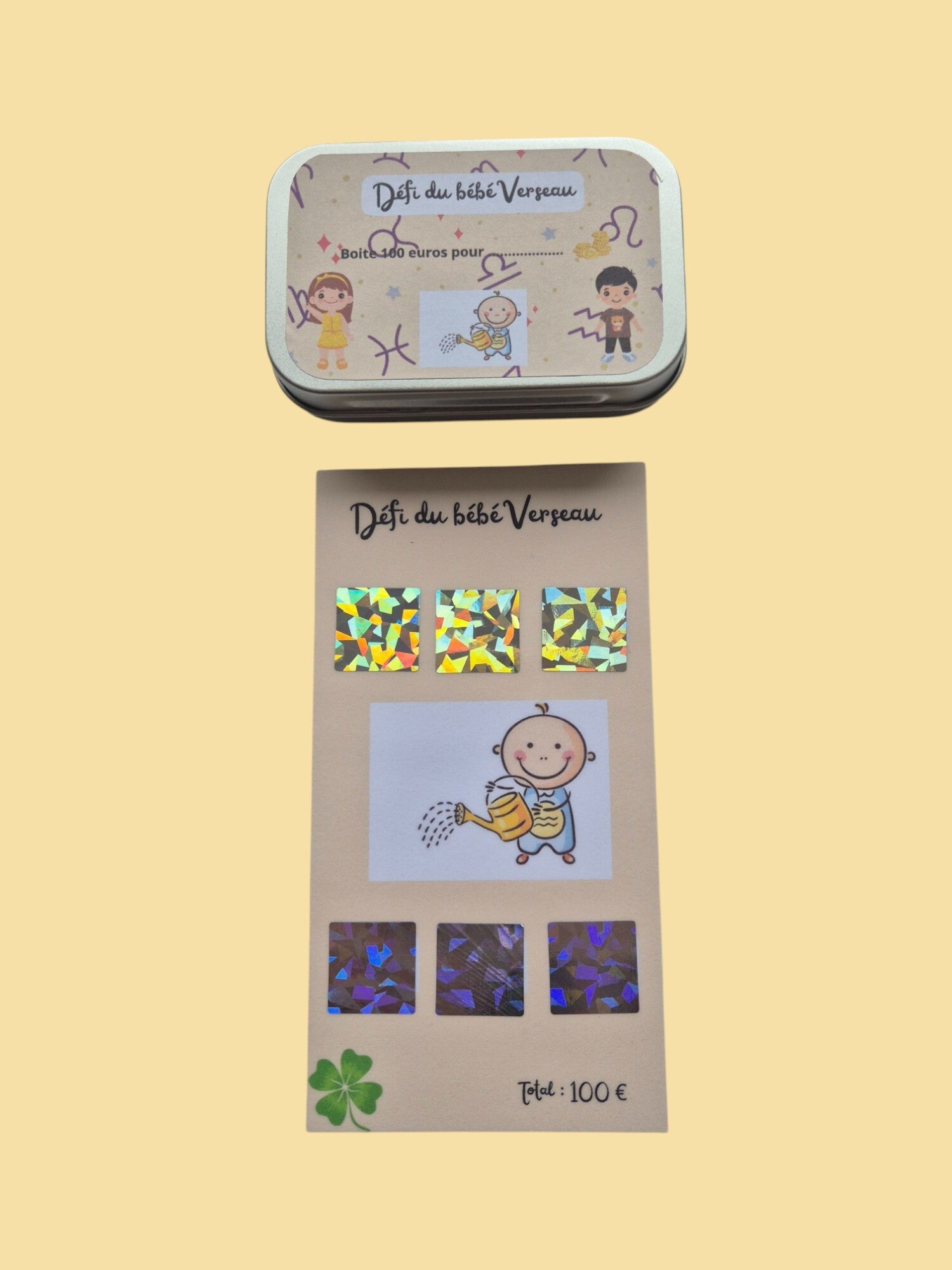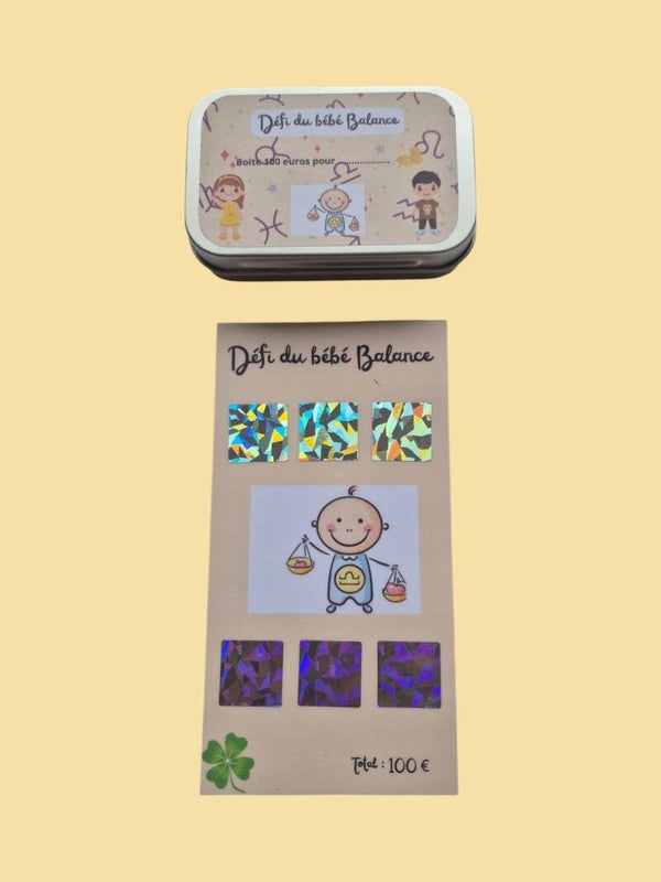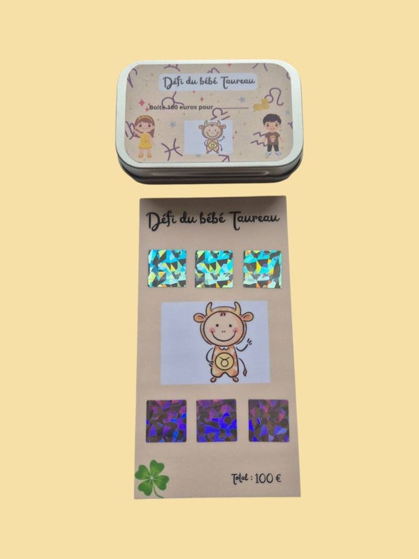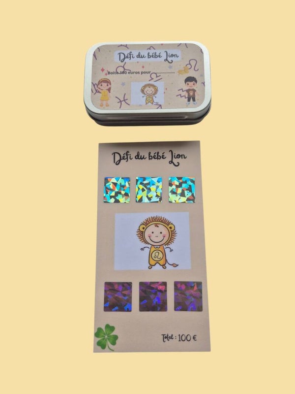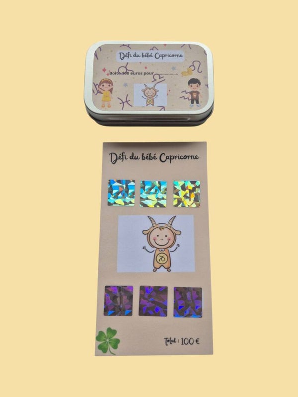 un tracker signe astrologique de votre enfant avec 6 cases surprises à gratter pour économiser 100 euros pour votre enfant ( à remettre sur un compte ou à garder)