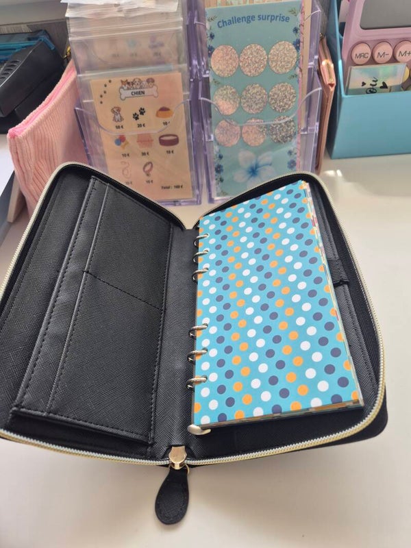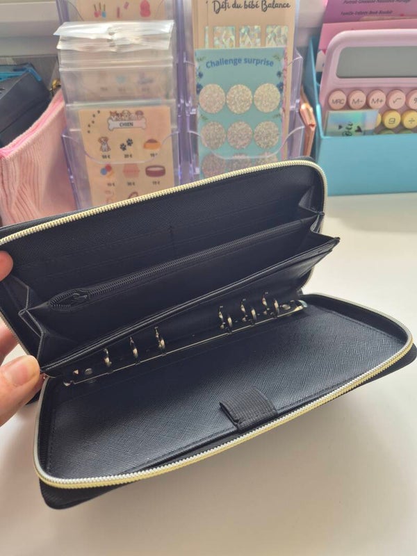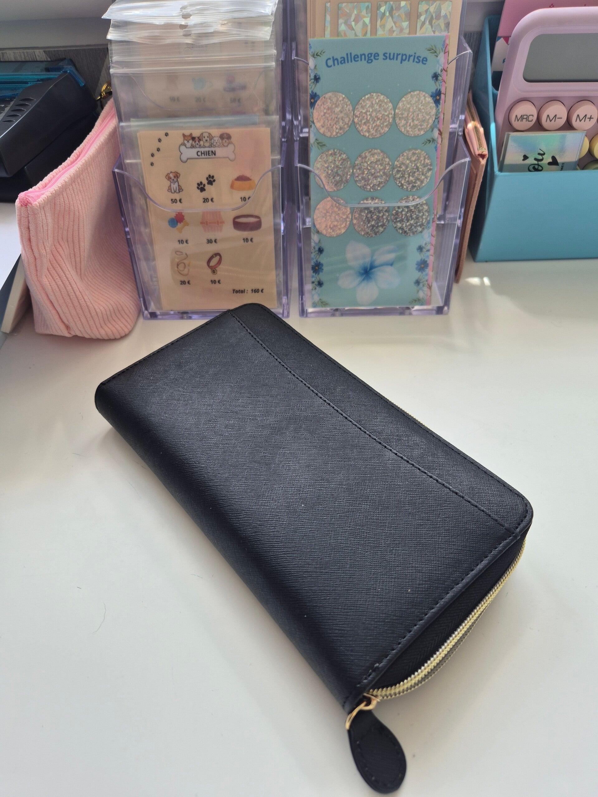 Portefeuille budget avec rangement pour cartes et compartiment pour pièces et billets.